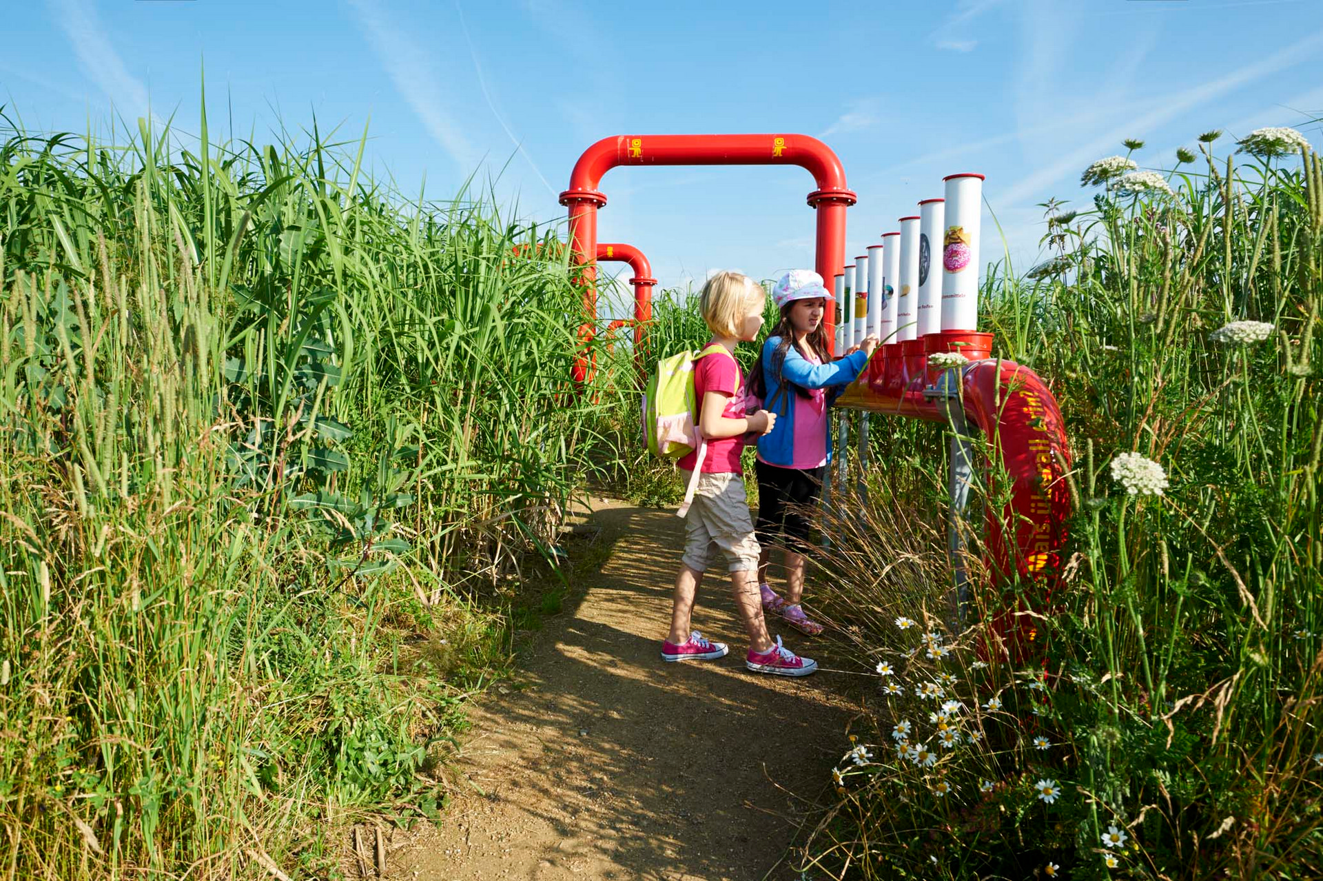 Die Station Landwirtschaft der Regionalpark Klimaroute macht sichtbar, wie eng unser Essverhalten mit dem Klimawandel verknüpft ist. Auf einem Acker bei Nauheim werden globale Warenströme, Treibhausgasemissionen und regionale Alternativen anschaulich erklärt. Besucherinnen und Besucher erfahren, wie Landwirtschaft zugleich Verursacherin und Betroffene des Klimawandels ist und welche Rolle regionale Produkte für den Klimaschutz spielen können.