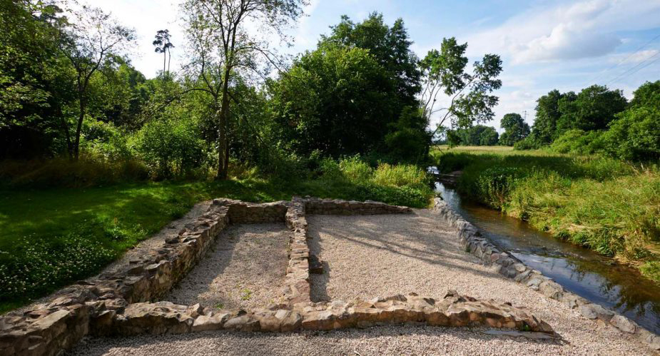Unweit der Brücke liegen die freigelegten Reste der ehemaligen Mühle von Renigishausen. Archäologische Grabungen haben hier die Grundmauern sichtbar gemacht und damit an eine Siedlung erinnert, die bereits im Mittelalter aufgegeben wurde. Informationstafeln und die Einbindung der Mauerreste in die Gestaltung des Platzes machen die historische Nutzung der Landschaft nachvollziehbar und verbinden Naturerlebnis mit Kulturgeschichte.