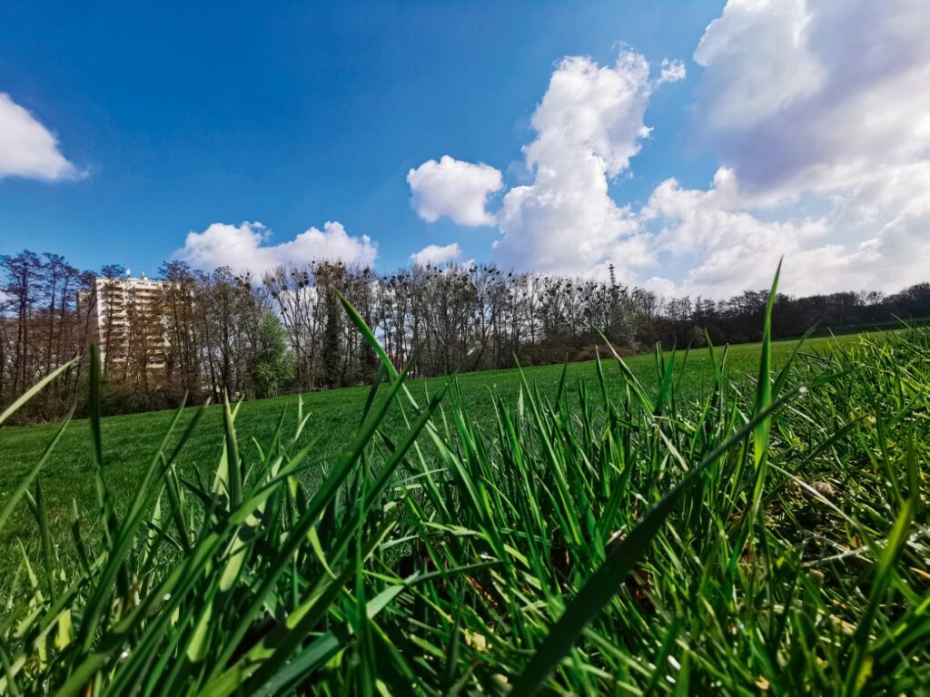 Nach 500 m Links auf den Trampelpfad über die Wiese entlang des Salisbach einbiegen. Den Bach auf dem ausgelegten Brett überqueren und weiter dem Pfad am Bach und durch das Wäldchen folgen, bis zur Grünanlage An der Pumpstation.