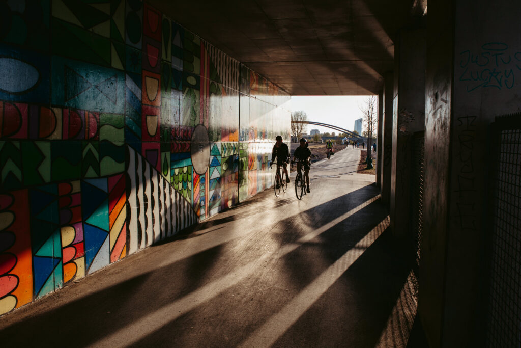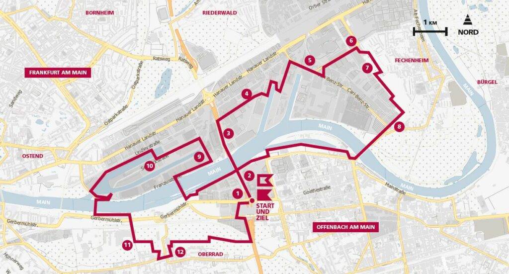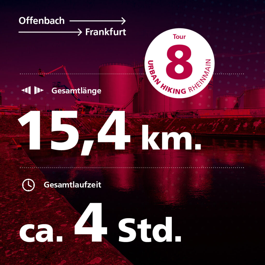 Auf dieser Tour liegen Zumutung und Erlösung immer nah beieinander, manchmal weiß man nicht, was was ist und manchmal fallen sie in eins. Die Dynamik und die Widersprüche der Region werden vielleicht nirgends so deutlich spürbar wie im Grenzgebiet der beiden alten Rivalen Frankfurt und Offenbach, wo die „modernen Zeiten“ sich an einer über tausend Jahre alte Territorialgrenze reiben können und Flurstreifen für den Kräuteranbau ebenso überraschend inmitten der Stadtlandschaft auftauchen wie die laute und dreckige Geschäftigkeit eines ausgewachsenen Industriehafens. Manche dieser Widersprüche und Kontraste sind längst Teil der Folklore und des Selbstverständnisses beider Städte, andere gilt es noch zu entdecken – eine Achterbahnfahrt der Eindrücke und Gefühle ist der Tag rund um die Kaiserlei in jedem Fall!