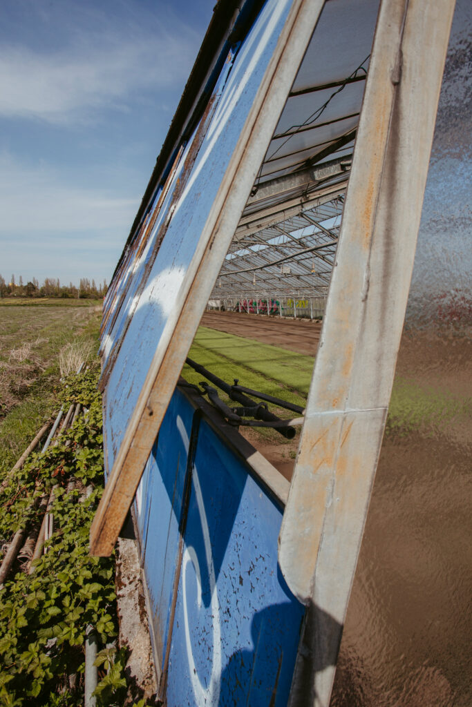 Der Szenenwechsel könnte nicht aprupter sein. Ich befinde mich in einer schmalen, aber in der Länge unglaublich ausgedehnten Art Zwischenreich, hinter dem, das sagt mein Stadtplan, Fechenheim liegen muss. Die Gärten, Zäune und Hütten dieses Reichs sind zusammengeschustert aus allem, was nichts kostet und sich verbauen lässt. Wenn vorher Anonymität und riesiger Maßstab das geschehen bestimmten, dann sind es jetzt Individualität, Detailreichtum und Nachbarschaft. Offenbar haben sich die Fechenheimer Industriearbeiter diese Pufferzone zwischen Industrie- und Wohngebiet zu eigen gemacht und dabei die Vorschriften der Deutschen Kleingartenverordnung nur gelegentlich befolgt. Das Potpourri des urban gardening before the word wird komplettiert durch eine Friedhofsgärtnerei mit Gewächshäusern und allem was dazugehört und mehrere von Pfaden durchzogene Brachflächen, deren Brombeerbewuchs auf ehemalige Deponien schließen lässt. Als ich mich dem Ende dieser labyrinthischen Parallelwelt nähere, tut sich vor mir nochmals eine größere, dreieckige Wiese auf, deren Weite so unerwartet kommt, dass ich ehrfürchtig innehalte. Dann haben amtliche Baustandards, Asphalt und Straßennamen mich wieder: Auf der Dieburger Straße gehe ich vor bis zur Carl-Ulrich-Brücke, überquere abermals den Main und betrete wieder Offenbacher Boden.