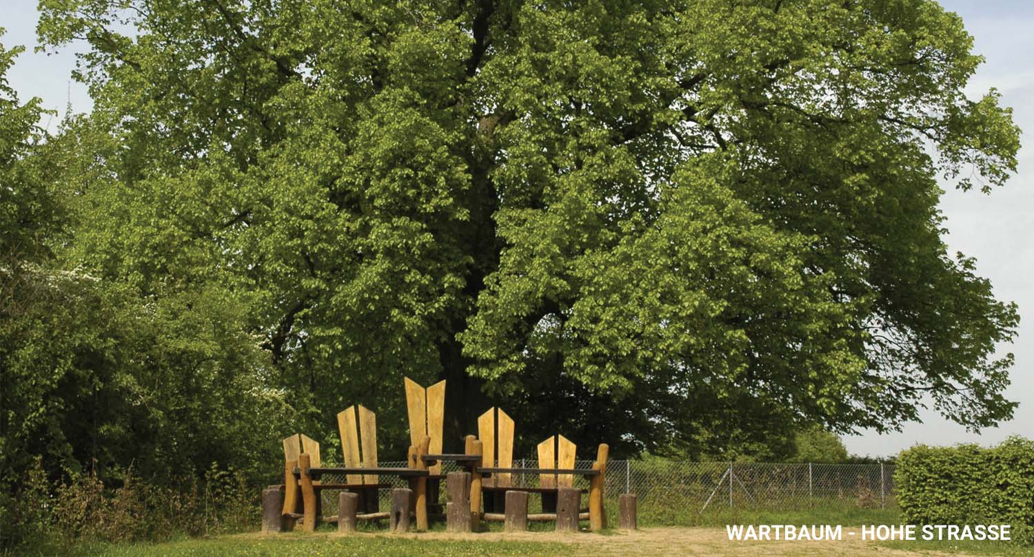 Der Wartbaum an der Hohen Straße ist ein markantes Naturdenkmal und ein geschichtsträchtiger Aussichtspunkt oberhalb von Nidderau im Main-Kinzig-Kreis. Die mächtige Linde und die gestalteten Elemente rund um den Platz machen die Station zu einem eindrucksvollen Ziel entlang der Regionalparkroute Hohe Straße.