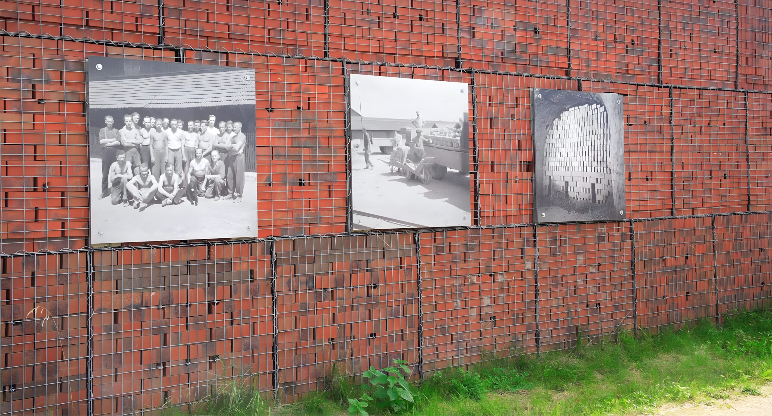 Gestalterische Elemente des Parks erinnern an seine industrielle Vergangenheit. Überdimensionale Ziegel und mit Ziegeln gefüllte Gabionenwände markieren den Eingangsbereich. Entlang der zentralen Wegachse, die über den historischen Schienen der Loren verläuft, erzählen Informationstafeln mit Fotografien von Ruth von Wangelin die Geschichte der früheren Ziegelproduktion.